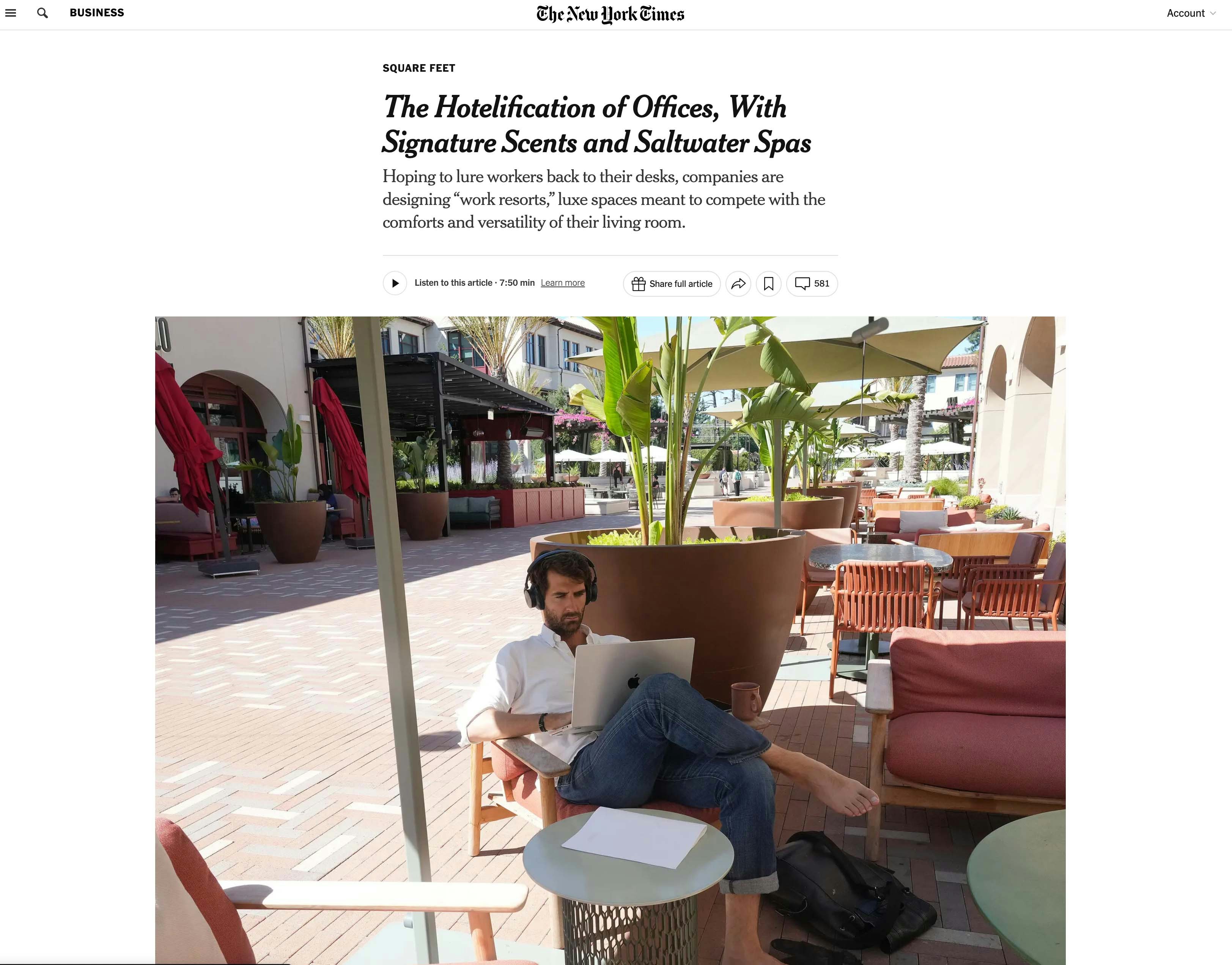 The headline from a recent New York Times article on โThe Hotelification of Officesโ: