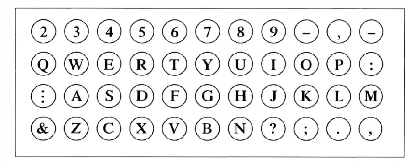 An early QWERTY keyboard layout. Image Credit: Wonderful Writing Machine by Jr. Bruce Bliven (1954)