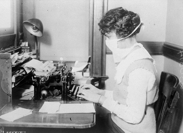 Searching online for some visual inspiration, I came across this image of a typist wearing a mask in 1918 October 16th, New York: